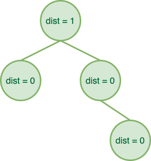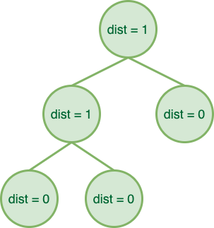 - 如果一个结点的左孩子和右孩子都不为空,则该结点的 dist 为 \(\min{(dist_\text{left child}, dist_\text{right child})} + 1\);
